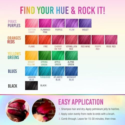 • Designed for compatibility with all hair types, offering bold color without requiring peroxide or damage.