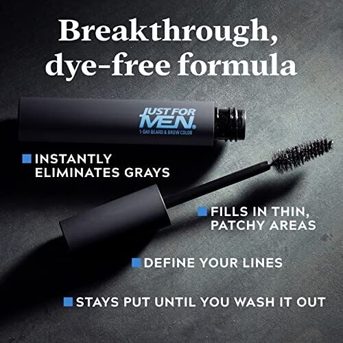 A quick, temporary color for beard and brows that blends with natural tones, delivering a polished, well-defined look. Dye-free formula provides a subtle finish with no harsh chemicals, targeting gray hairs for a refreshed, fuller facial hair appearance.