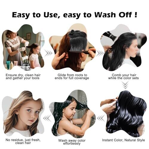 Experience bold black color with a safe, chemical-free at-home formula. This temporary, washable wax rinses out easily, leaving no sticky residue. Suitable for all hair types and genders, ideal for cosplay, parties, Halloween, and quick daily color changes.