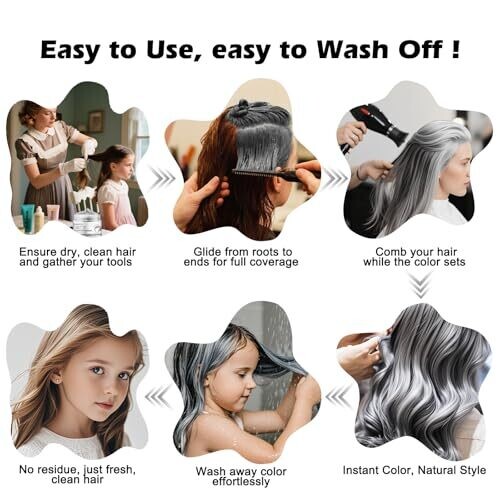 Vibrant silver-grey tones lift any look for cosplay, parties, or everyday styling. Washable and easy to apply with a smooth cream texture that rinses out with water and shampoo. Kid and adult friendly, non-sticky hold for comfortable wear.