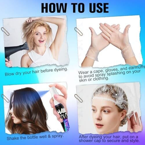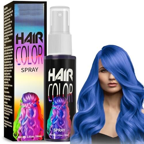 Vibrant blue temporary hair color for a bold, trendy look in minutes. Easy spray with quick-dry formula for mess-free styling. Includes cape and ear covers to protect clothing. Washes out with shampoo; great for parties, cosplay, and events.