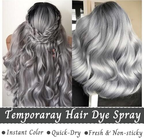 • Temporary Hair Colour - Washable One Time Temporary Dye - Hair Dye Spray - Coloured Hair Spray Fast Dyeing (Gray)