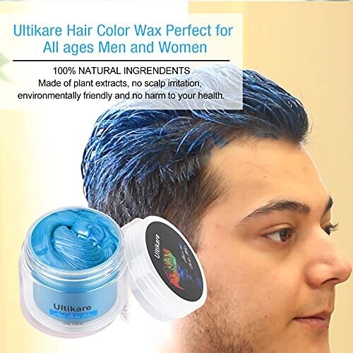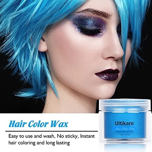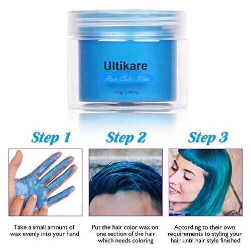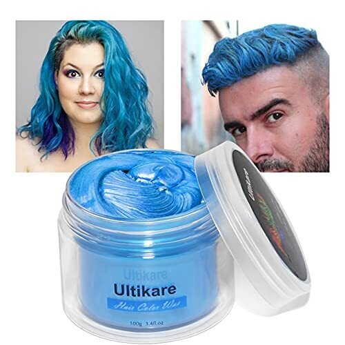 • Ultikare Hair Color Wax Instant Dye Cream Mud Washable Temporary Color Pomade for Party, Cosplay, Halloween (Grey) (Blue)